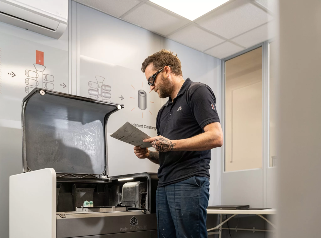 A material-jetting wax printer naturally creates these features, and casting accurately reproduces the intricate detail in metal. Testing a cast prototype ensures the part genuinely reflects how the final manufactured product will perform under stress, torque, and vibration.